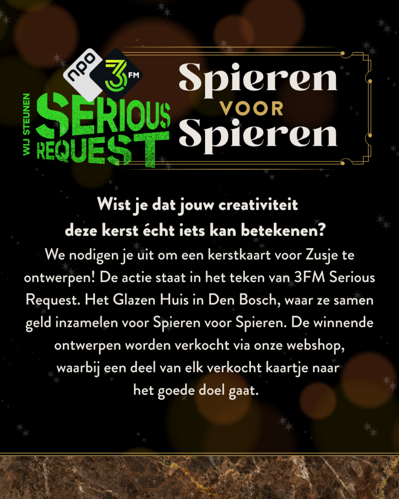 Wil jij iemand verrassen met รฉรฉn van de winnende kerstkaarten? Bestel deze dan via de Zusje webshop. Van iedere verkochte kaart gaat bovendien โฌ1,- naar Serious Request , zo bezorgen we samen nog meer dubbel geluk deze kerst. โค๏ธ